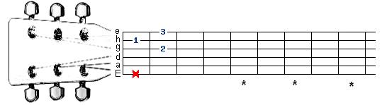 • pokud je v diagramu vyznačen Červený křížek - označuje strunu, která do akordu nepatří (je třeba ji tlumit).